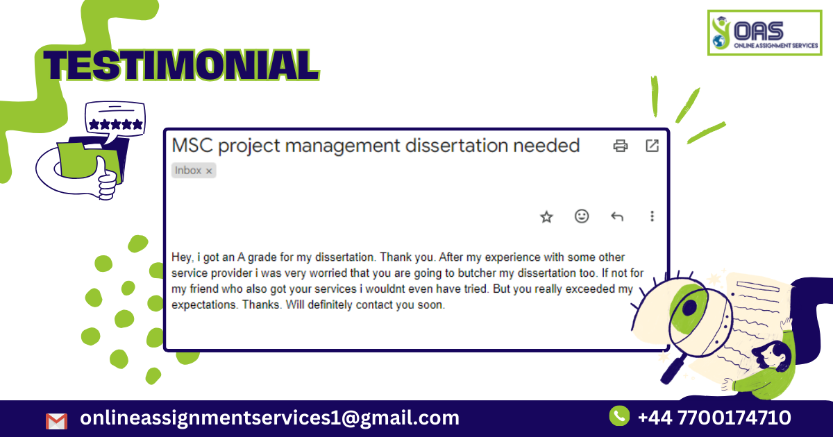 To avail our professional dissertation writing services UK and book your final project with us, call or WhatsApp us at +447700174710 or mail us your requirements at onlineassignemtnservices1@gmail.com.